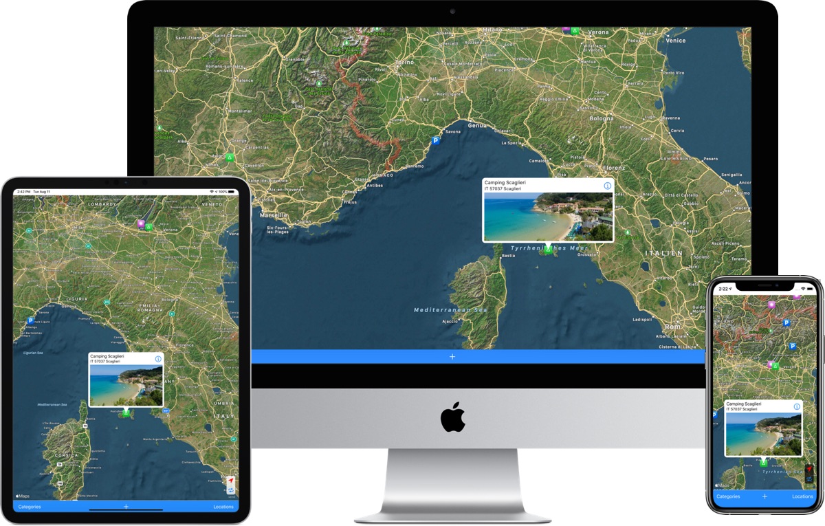 ![]() The Locations MAP app has numerous useful functions so that operation is simple and fun at the same time. One of the most important functions is the quick and easy creation of a new location. In addition to searching for an address, it is also possible to enter GPS data directly. If you want to create a location from which you already have a picture in your photos, the coordinates are taken directly from the picture (if available). You can also tap directly on the map (long-touch) to select a new location. If you want to capture a location on the spot, simply use the camera function to create a new one. You can equip each individual location with additional information (website, email, info text, telephone and photo) and assign the location to its own category. You can also mark selected locations as "favorites" or as "already visited". You can find new locations, sorted by date, in the "Recently added" list. You can see your locations in the respective category in the map on the start page. You can also create the categories yourself and design the map icon according to your taste. In addition, you can decide in the category list which locations (according to categories) should be displayed on the map. This was just a small introduction to the extensive functions of this app. We hope you enjoy discovering, collecting and sharing interesting places on our great planet. |